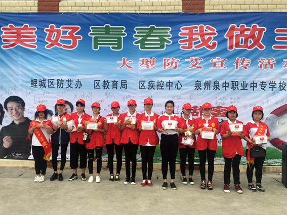5月(yuè)5日(rì)下(xià)午,鯉城(chéng)區(qū)防艾辦、區(qū)教育局、區(qū)疾控中心牽手泉州市(shì)泉中職業(yè)σ中專學校(xiào)以“五四”青年(nián)節為(wèi)契機(jī),在泉中職業(yè)中專學校(xiào)舉辦“美( měi)好(hǎo)青春我做(zuò)主”大(dà)型防艾宣傳活動。轄區(qū)16所中學及大(dà)、中專院校(xiào)的(de)校(xiào)醫(yī)們進行(xíng>)觀摩。