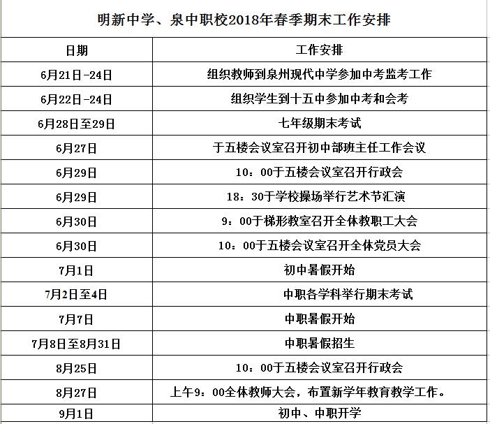 關于2018年(nián)春季期末暨2018年(nián)秋季期初工(gōng)作(zuò)安排的(de)通(tōng)知(zhī)