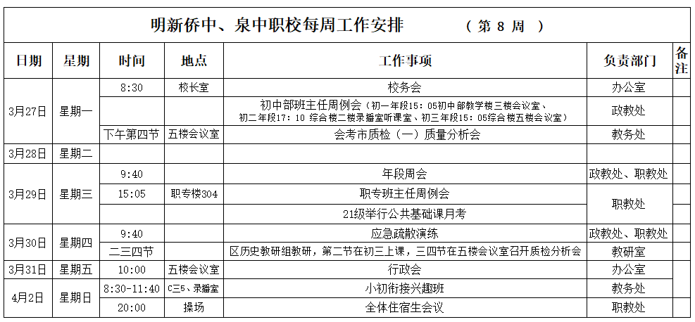【03月(yuè)27日(rì) 星期一(yī)】 2023年(nián)春季第8周工(gōng)作(zuò)安排