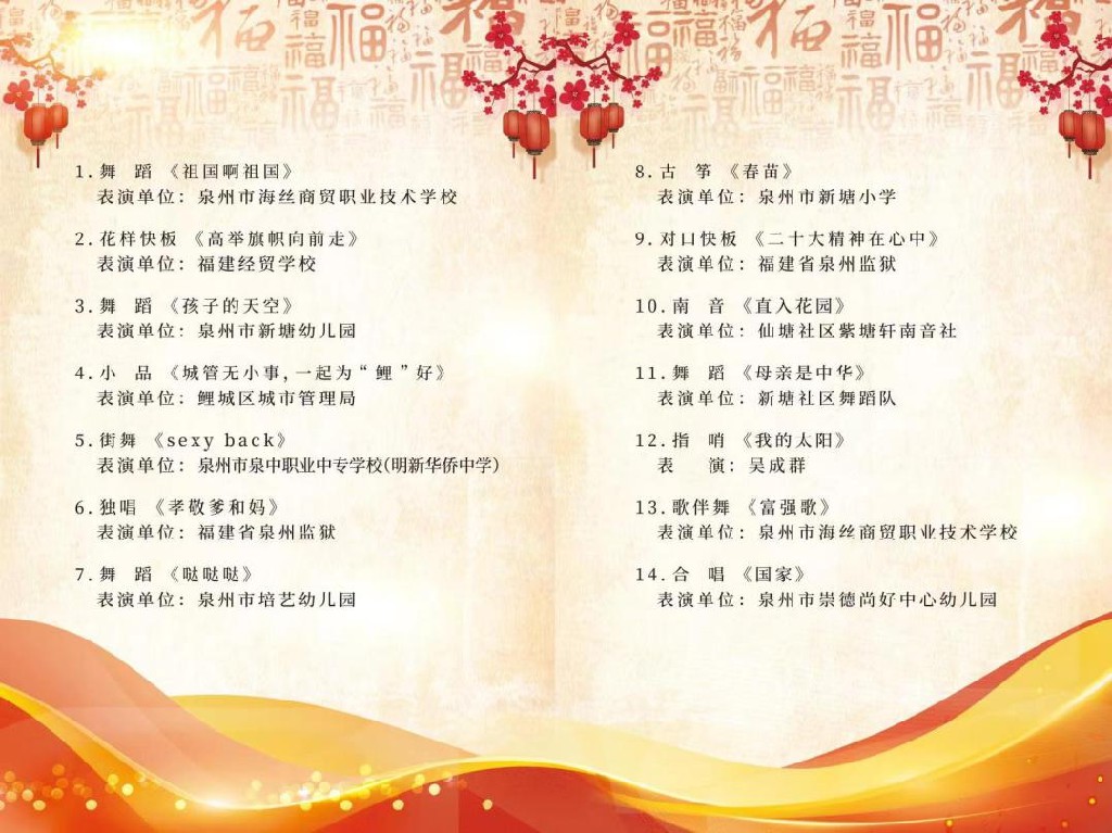 為(wèi)深入學習(xí)宣傳貫徹黨的(de)二十大(dà)精神,讴歌(gē)新時(shí)代偉大(dà)變化(huà)和(hé)輝煌成就(jiù),以文(wén)化(huà)凝聚人(rén)心,增強人(rén)民(mín)群衆的(de)精神力量,推進世界遺産城(chéng)市(shì)泉州,文(wén)化(huà)自(zì)信自(zì)強。4月(yuè)26日(rì),“讓世界看(kàn)見(jiàn)中國(guó)鄉(xiāng)村(cūn)(社區(qū))走進常泰新塘”開(kāi)展2023泉州“村(cūn)晚”示範展示活動,活動在鯉城(chéng)區(qū)常泰街(jiē)道(dào)新塘“黨建+”鄰裡(lǐ)中心舉行(xíng)。
