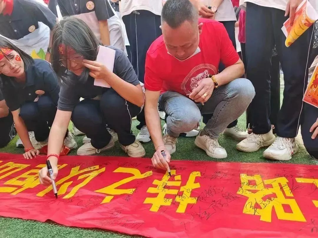 夢想不(bù)應該止于心動。老(lǎo)師(shī)學生(shēng)和(hé)家(jiā)長(cháng)一(yī)同為(wèi)學生(shēng)簽名立志(zhì),寫下(xià)美(měi)≠好(hǎo)祝願。學生(shēng)們也(yě)寫上(shàng)自(zì)己的(de)心願挂于祈願樹(shù)上(shàng),靜(jìng)待六月(yuè)的(d→e)花(huā)開(kāi)!