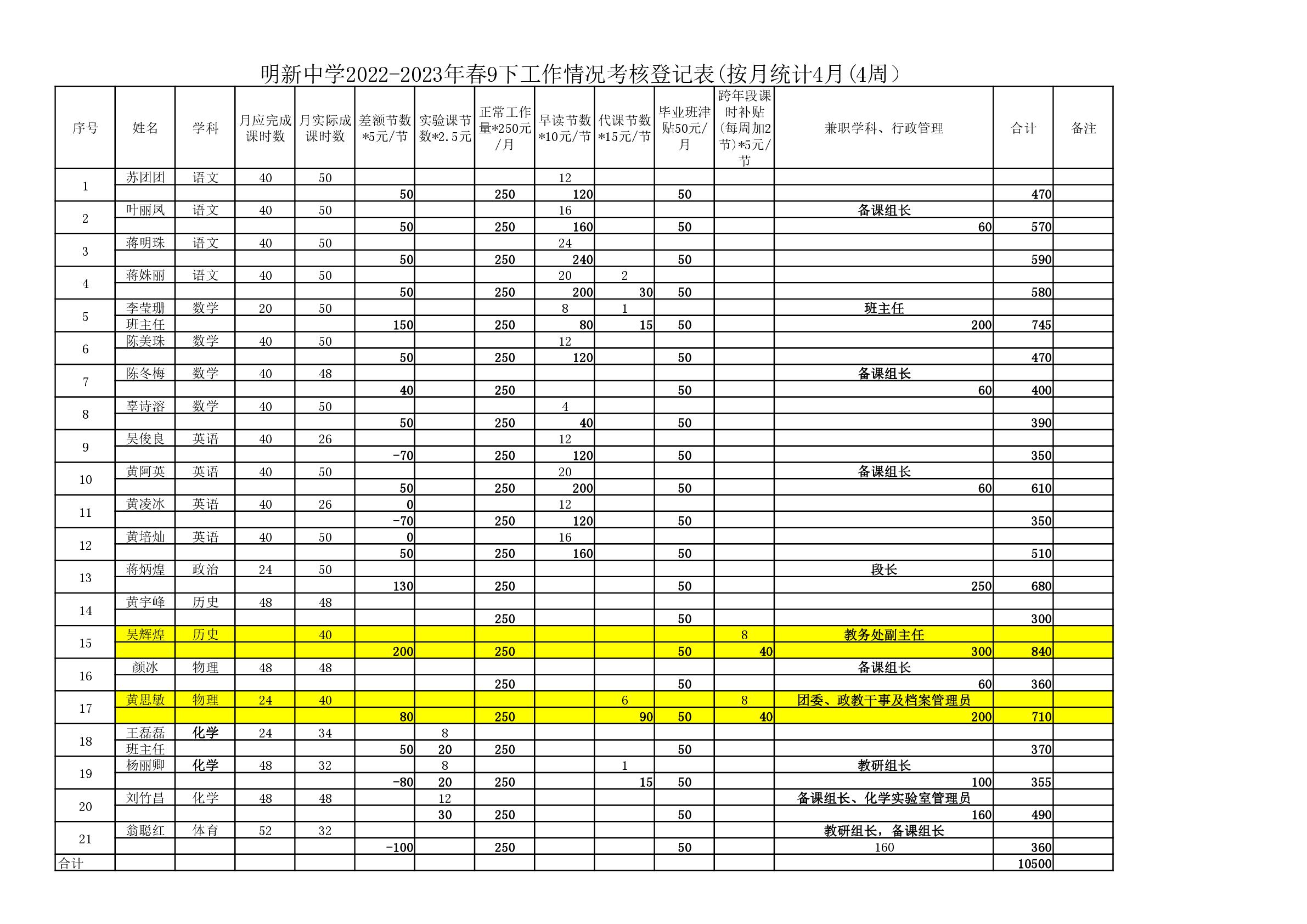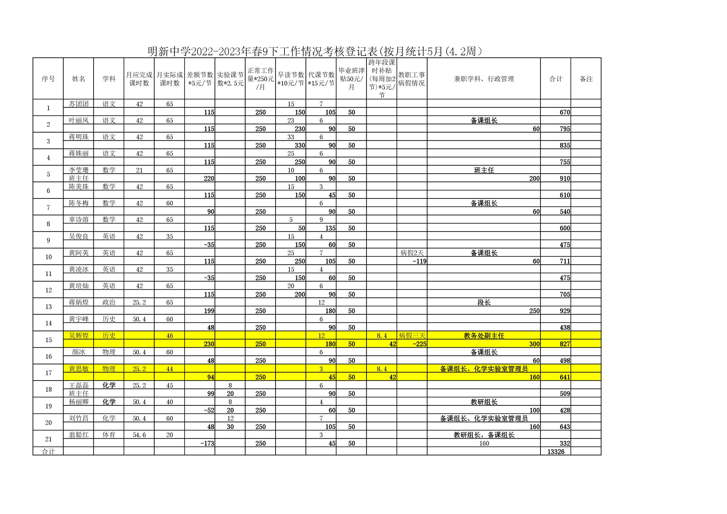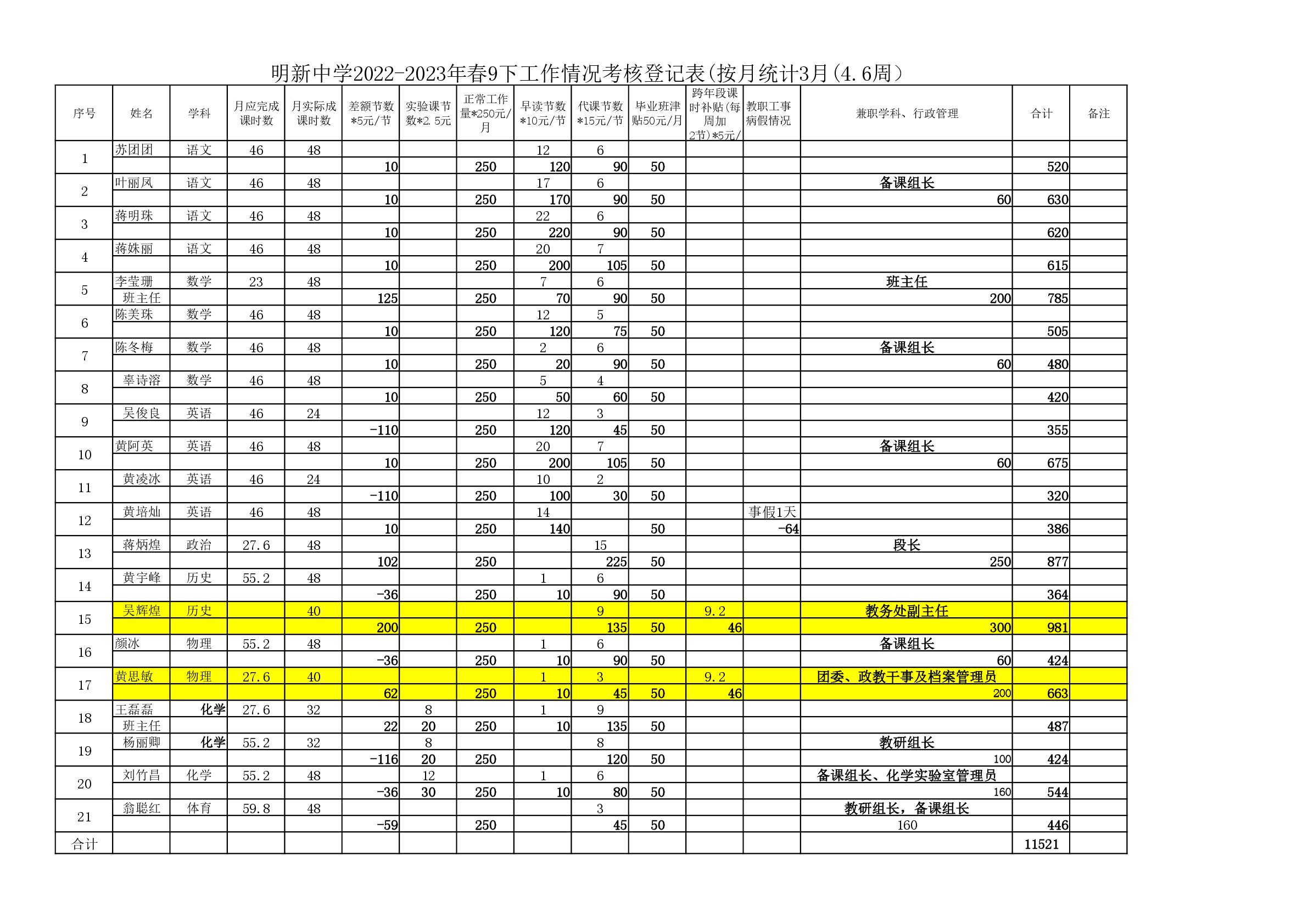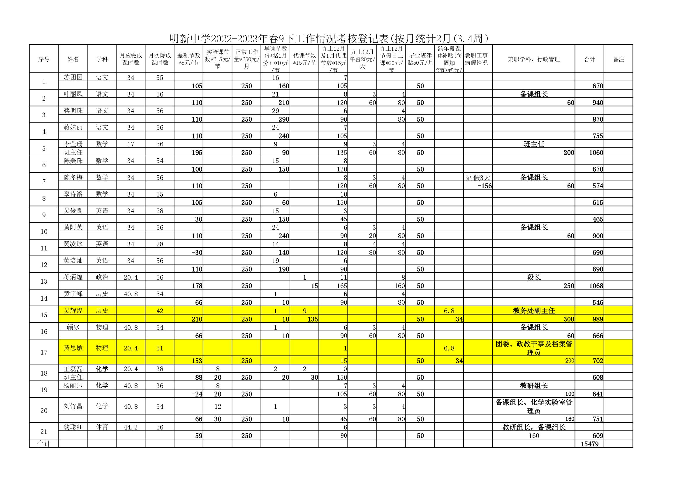 2023春在編教師(shī)九年(nián)級績效統計(jì)表1-6月(yuè)