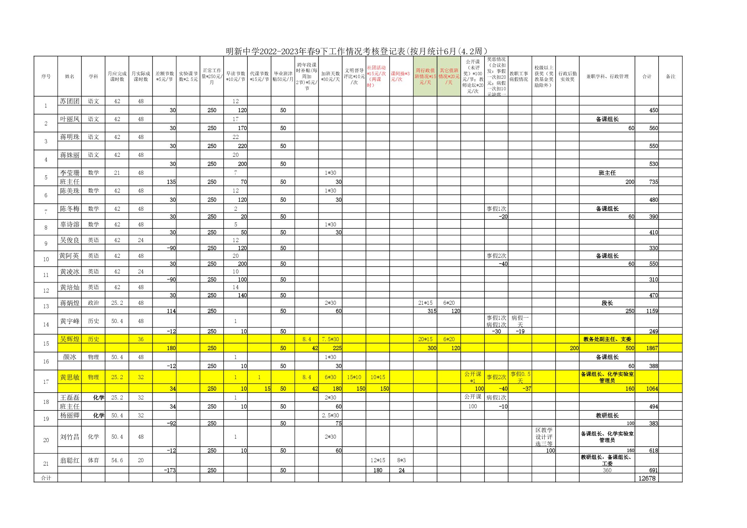 2023春在編教師(shī)八年(nián)級績效統計(jì)表1-6月(yuè)
