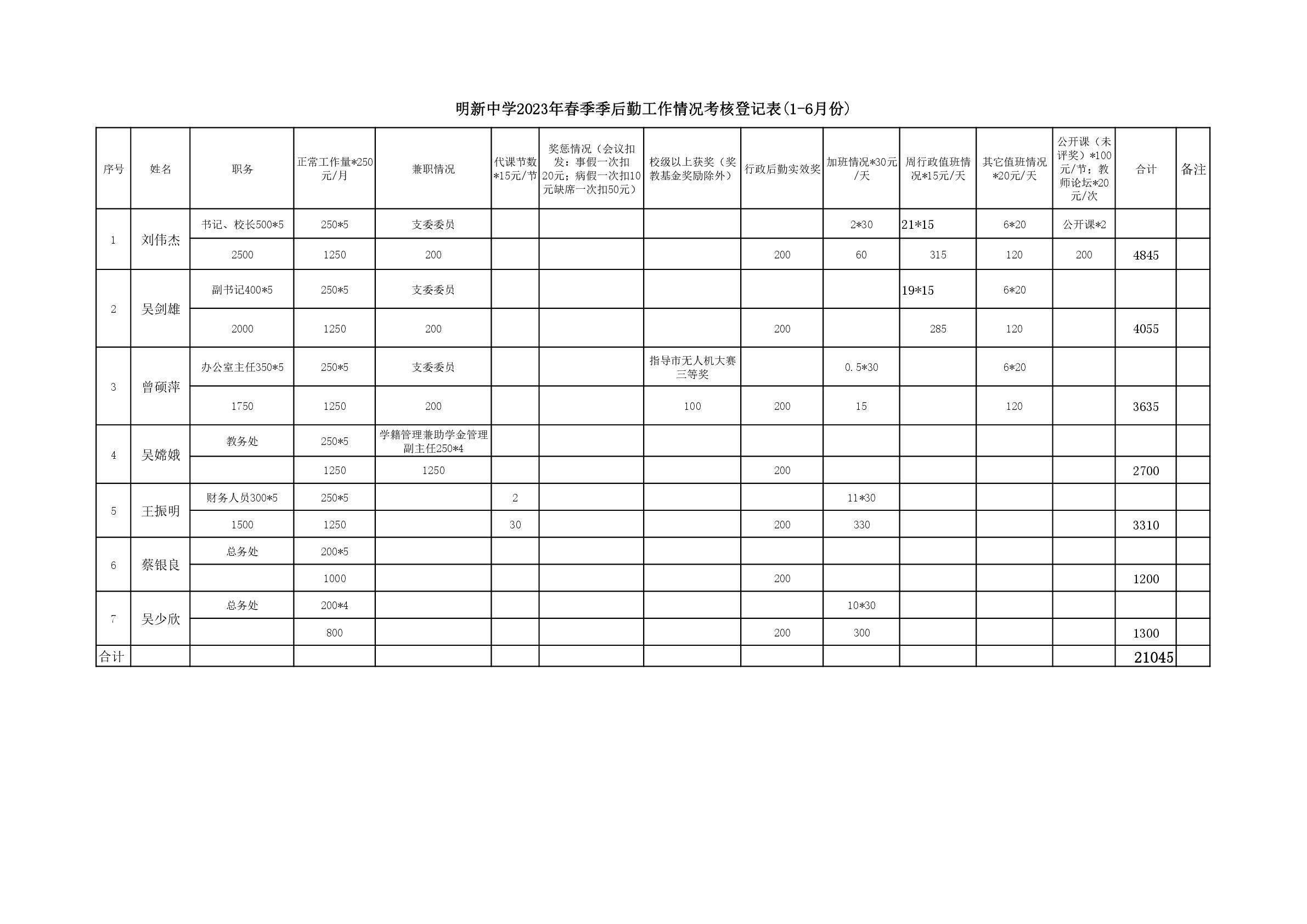 2023年(nián)春行(xíng)政後勤老(lǎo)師(shī)績效統計(jì)表