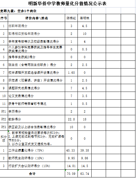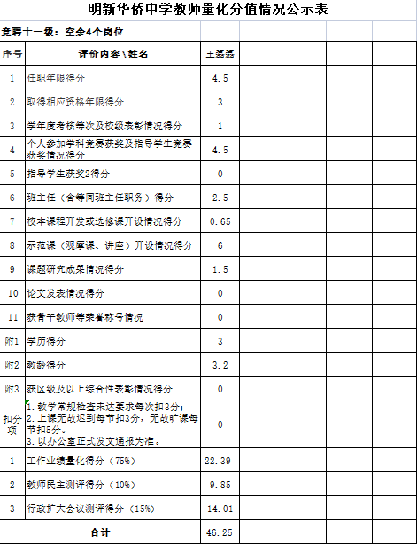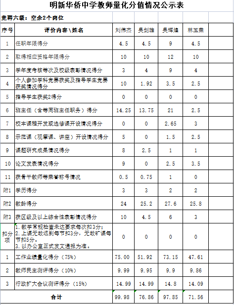 明(míng)新華僑中學教師(shī)量化(huà)分(fēn)值情況公示表