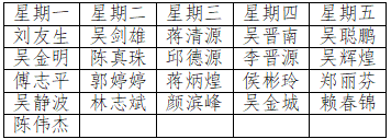 1.工(gōng)作(zuò)日(rì)值班:總巡視(shì):劉偉傑