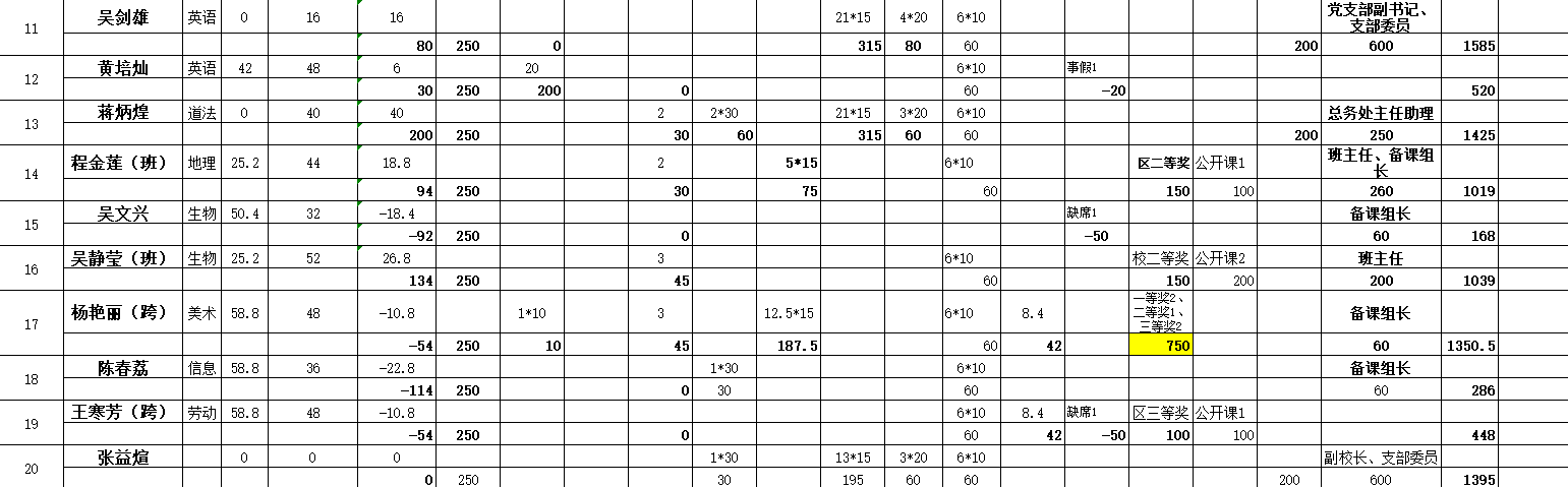 明(míng)新中學2023年(nián)秋工(gōng)作(zuò)情況考核登記表(按月(yuè)統計(jì)11月(yuè)( 4.4 周 )