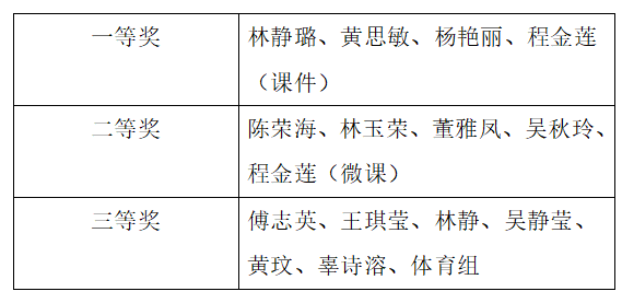 為(wèi)提高(gāo)我校(xiào)教師(shī)信息素養,深化(huà)課程改革,根據泉明(míng)中校(xiào)辦〔2024〕19号文(wén)件(jiàn)安排,我校(xiào)2024年(nián)信息素養提升實踐比賽如(rú)期舉行(xíng),經評委認真評審,共評選出一(yī)等獎4名,二等獎5名,三等獎7名,現(xiàn)将獲獎名單公布如(rú)下(xià):