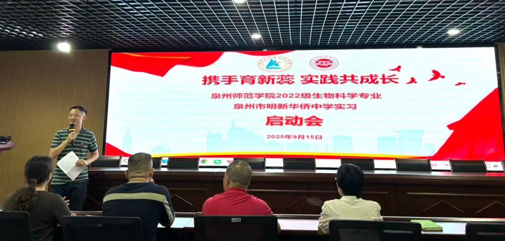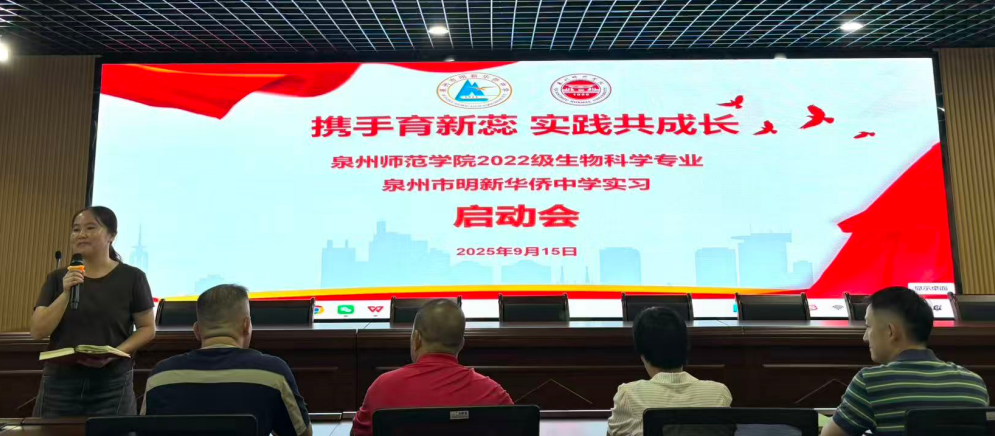 9月(yuè)15日(rì)下(xià)午,我校(xiào)為(wèi)泉州師(shī)範學院2022級生(shēng)物(₹wù)科(kē)學專業(yè)的(de)實習(xí)生(shēng)舉行(xíng)教育實習(xí)啓動會(huì)。本次啓動會(huì)以"攜手育<新蕊,實踐共成長(cháng)"為(wèi)主題,明(míng)新華僑中學副書(shū)記吳劍雄、副校(xiào)長(chán g)吳晉南(nán)、副校(xiào)長(cháng)劉友(yǒu)生(shēng)和(hé)各處室主任、§學科(kē)指導老(lǎo)師(shī)、班主任代表,以及泉州師(shī)院帶隊老(lǎo)師(shī)陳細×香、周明(míng)燦共同參會(huì)。