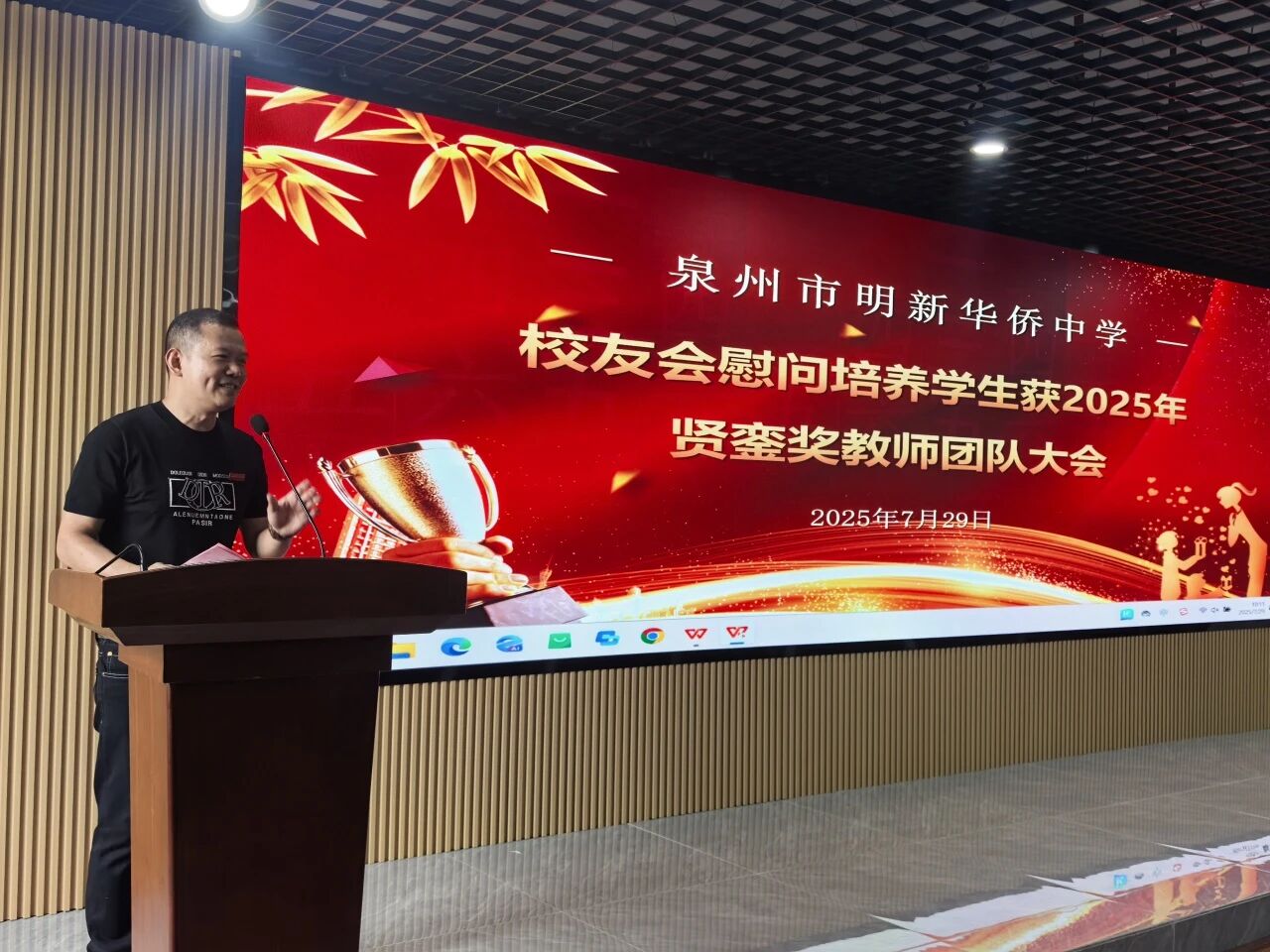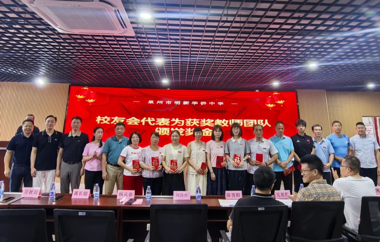 校(xiào)友(yǒu)會(huì)代表為(wèi)獲獎教師(shī)團隊頒發獎金(jīn)
