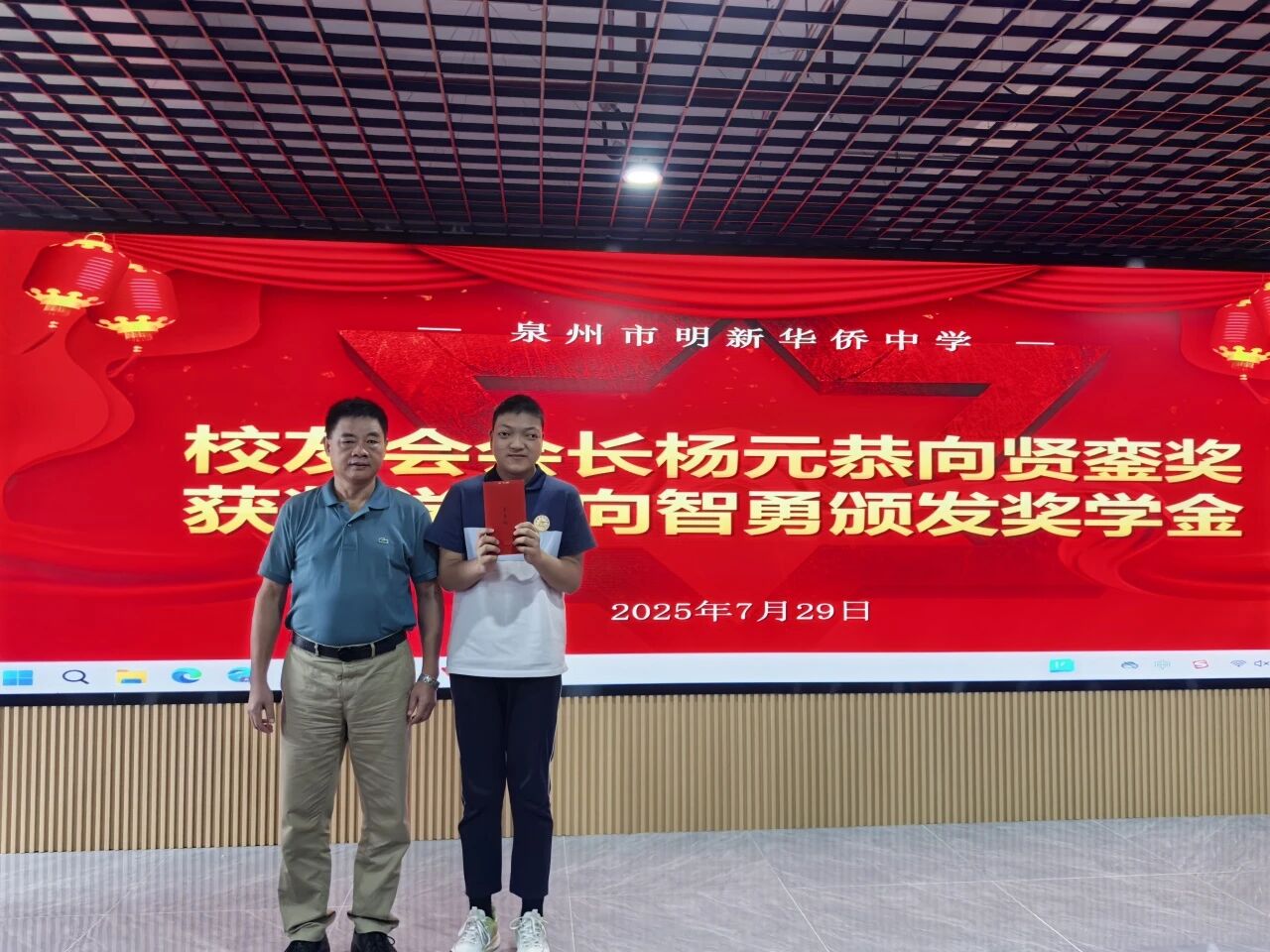 校(xiào)友(yǒu)會(huì)會(huì)長(cháng)楊元恭向賢銮獎獲獎學生(shēng)向智勇頒發獎學金(jīn)