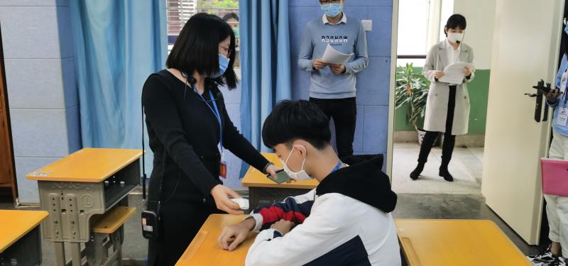 返校(xiào)當天,學生(shēng)由家(jiā)長(cháng)送至學校(xiào),前後間(jiān)隔一(yī)米,有(yǒu)序經過入校(♥xiào)專用(yòng)通(tōng)道(dào),經體(tǐ)溫測量,體(tǐ)溫正常者延制(zhì)定線路(lù)指引進入班級,接受班主任晨午檢。發現(xiàn)一(yī)名學生(s✔hēng)體(tǐ)溫異常,值班行(xíng)政當即将其帶至校(xiào)門(mén)口臨時(shí)隔離(lí)點,校(xiào)醫(yī)用(yòng)水(shuǐ)銀(yín)體(tǐ) 溫計(jì)二次測量體(tǐ)溫,詢問(wèn)無流行(xíng)病學史,值班行(xíng)政向帶班領導彙報(bào)情況,按應急處置指南(nán)指引,班主任通(tōng)知(zh→ī)家(jiā)長(cháng)到(dào)校(xiào)接至市(shì)醫(yī)院發熱(rè)門(mén)診就(jiù)診,消毒人(rén)員(yuán)到(dào)相(xiàng)關區(qū€)域進行(xíng)消殺,持續跟蹤學生(shēng)後續情況。