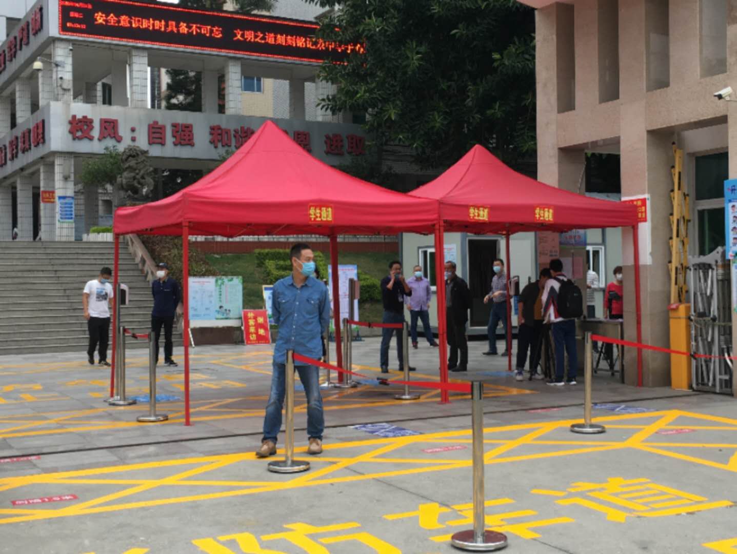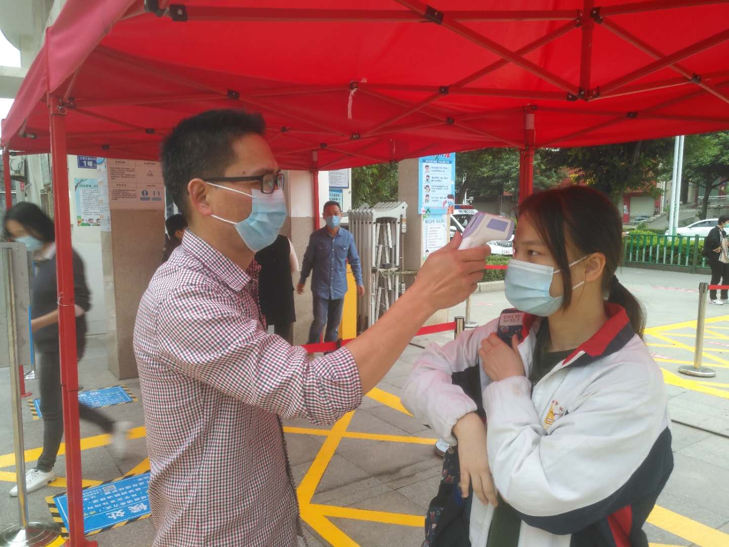 21日(rì)早上(shàng)7時(shí)許,學校(xiào)大(dà)門(mén)口井然有(yǒu)序,校(xiào)領導、區(qū)教育局挂點督導組、全體(tǐ)行(∑xíng)政、初三畢業(yè)班年(nián)段長(cháng)班主任、校(xiào)醫(yī)、社區(qū)衛生(shēng)服務中心挂點醫(™yī)生(shēng)、街(jiē)道(dào)派出所幹警早早到(dào)位,準備就(jiù)緒。班主任手持額溫槍等候在入校(xiào)通(tōng)道(dào)上(shàng),為(λwèi)每位錯(cuò)時(shí)上(shàng)學的(de)畢業(yè)班學生(shēng)測量體(tǐ)溫,學生(shēng)在1.5米等距隔離(lí)線上(shàng)有(yǒu)序排隊,接受檢測,進行(xíng)手部消毒,依次按照(zhào)引導标志(zhì)到(dào)達所在班級。